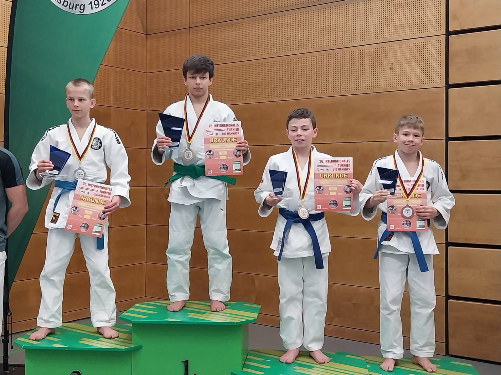 Dieses Jahr startete Alexander das erste mal als jüngster Jahrgang in der Altersklasse U16 beim internationalen Bundessichtungsturnier in Duisburg. Mit 29 Teilnehmern aus verschiedenen Nationen war seine Gewichtsklasse bis 37kg stark besetzt. Nach zwei gelungenen Auftaktkämpfen durch Ippon musste er sich leider im Poolfinale durch seinen Dauerkonkurentenen Menkov aus München Großhadern geschlagen geben. Weiter in der Trostrunde bestreitete Alexander weitere zwei Kämpfe, bis er im kleinen Finale um die Bronzemedaille stand. Auch hier zeigte er volle Konzentration und holte den Sieg schon nach einer Minute durch Ippon.